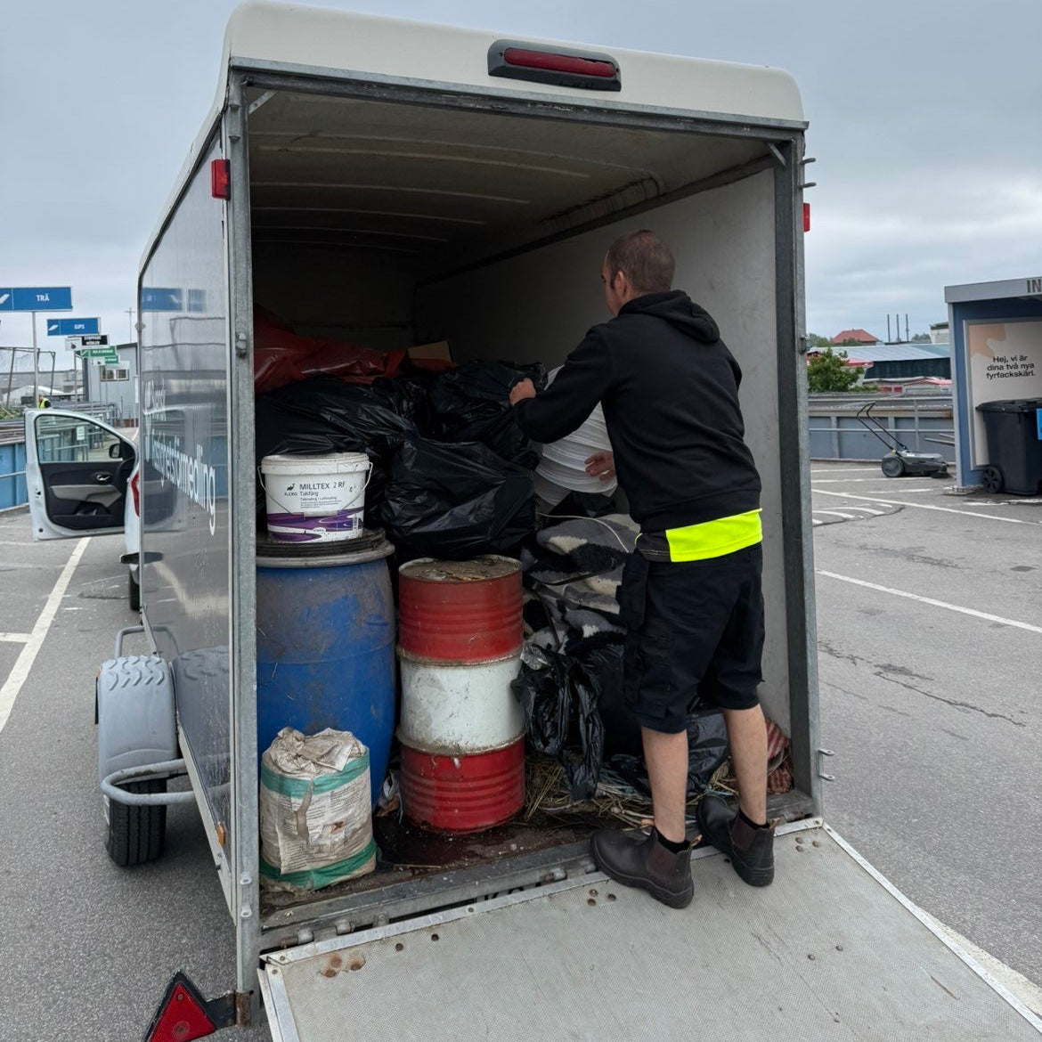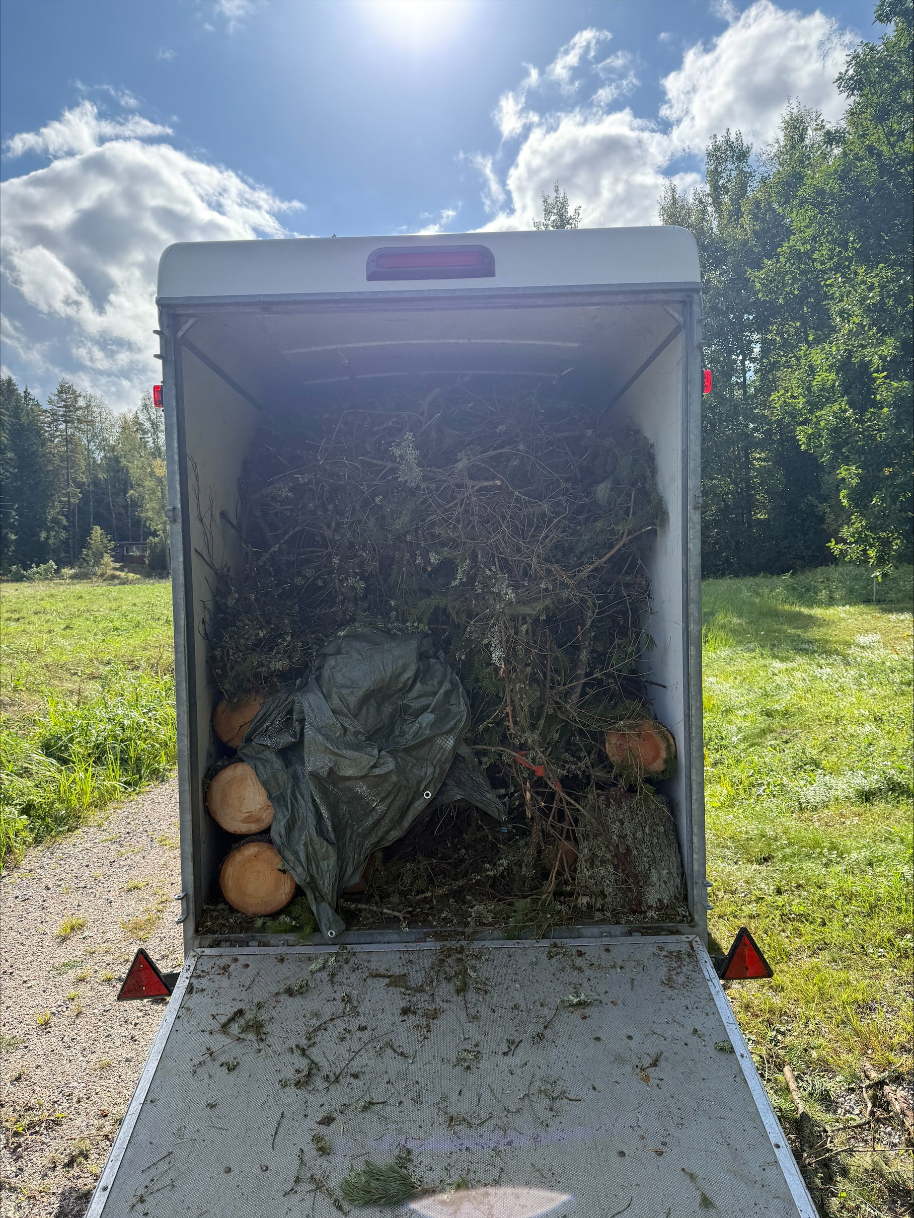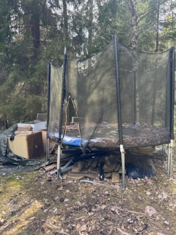 Demonterar och kör iväg ungarnas gamla studsmatta samt skrotet du gömt där under...