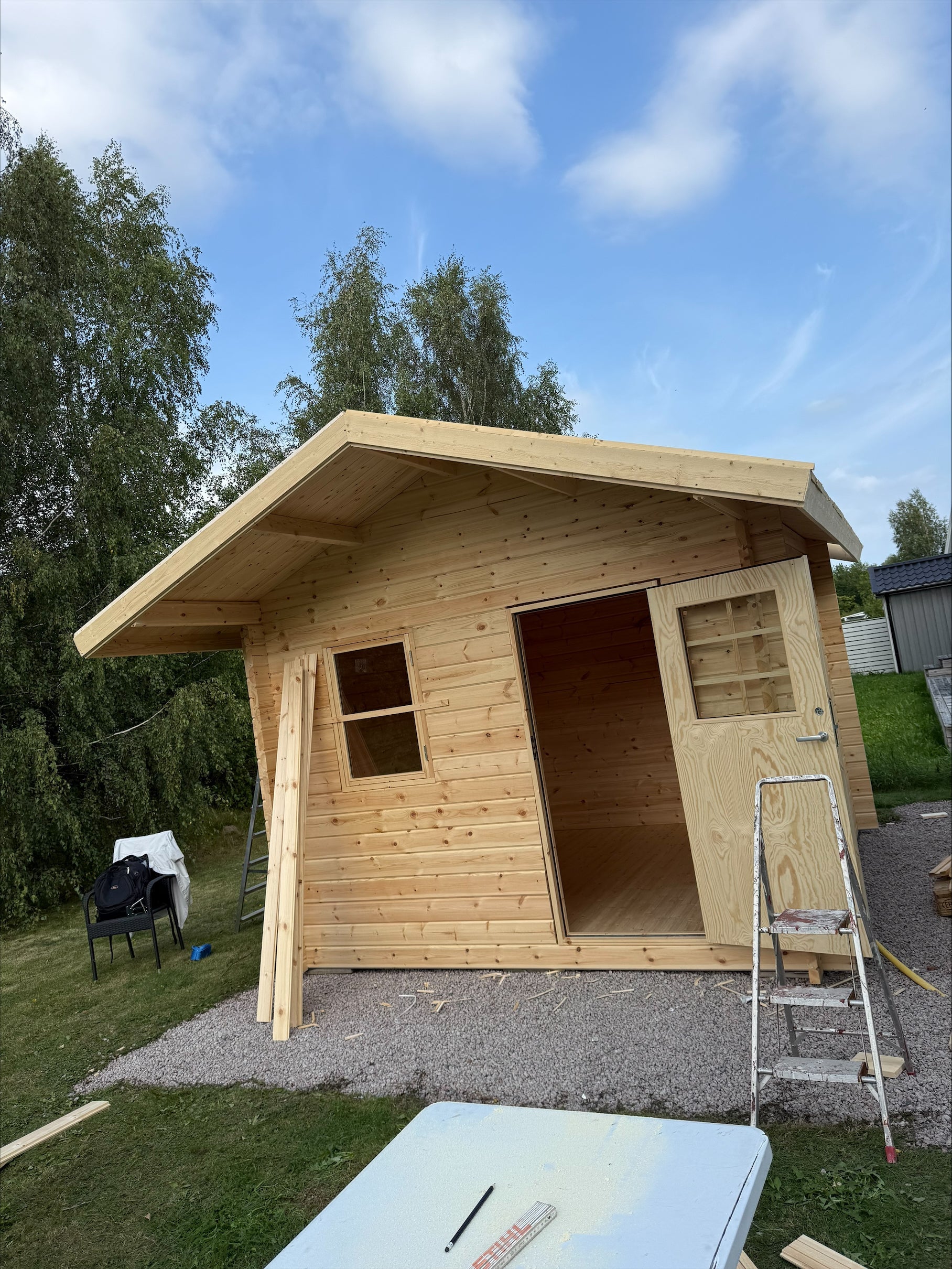 -Här kan du se vad vi tidigare gjort, utöver att montera denna fina friggebod!